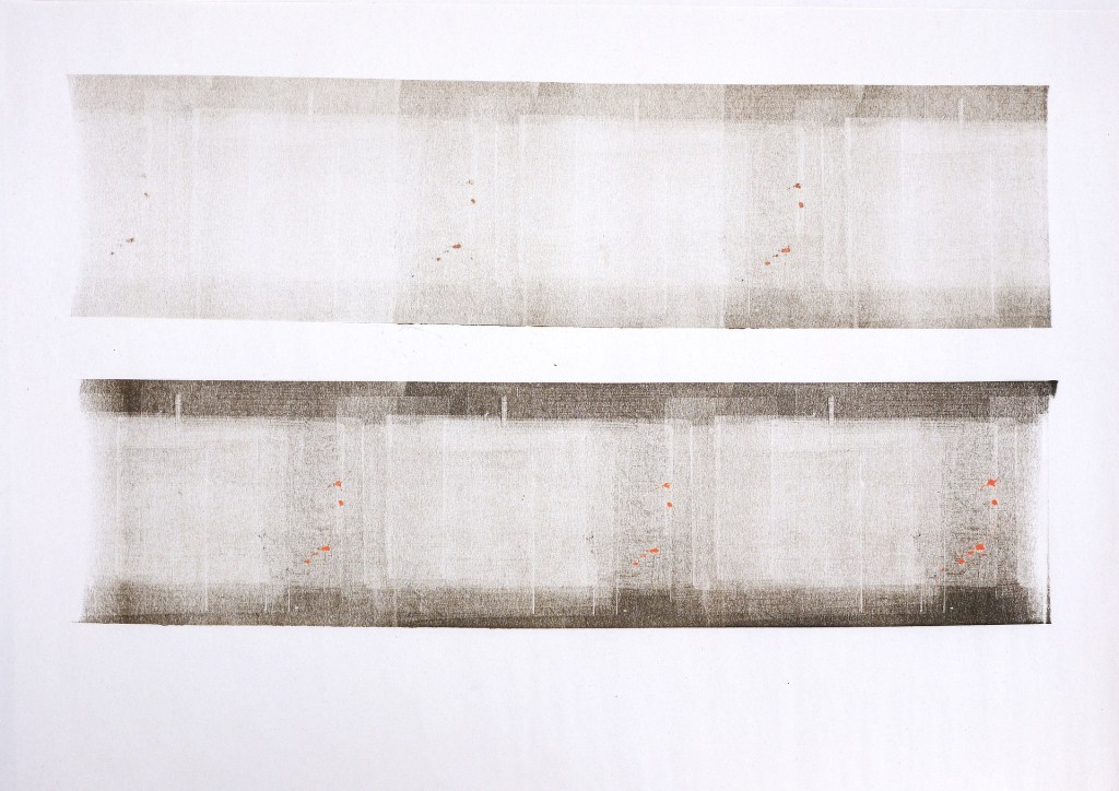 Sarjasta Painosali, 2025, kohopainomonotypia, 20 x 28 cm