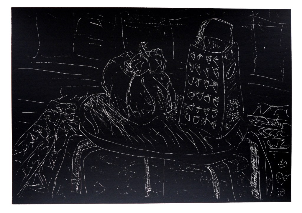 Tiikerihavaintoja, sarjasta Japani, 2025, kuivaneula, koko noin A6