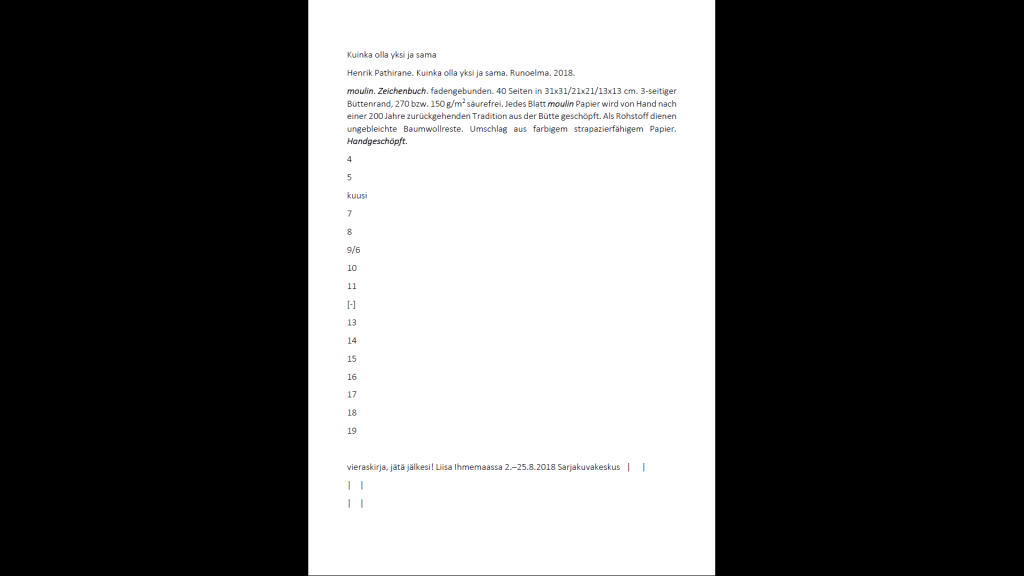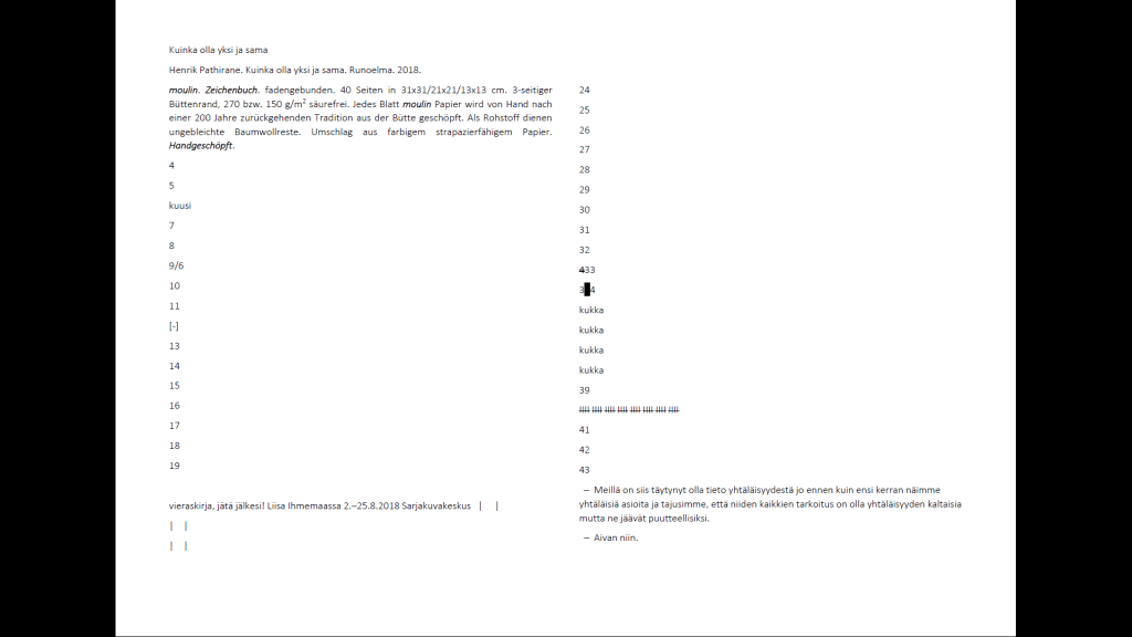 Kuinka olla yksi ja sama, Henrik Pathirane 2018/2020